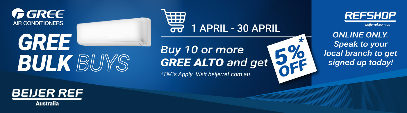 Gree Bulk BuysUnlock an extra 5% OFF your regular trade price when you buy 10 or more GREE ALTO units online. From 1 April to 30 April only! T&C's apply.Read more -